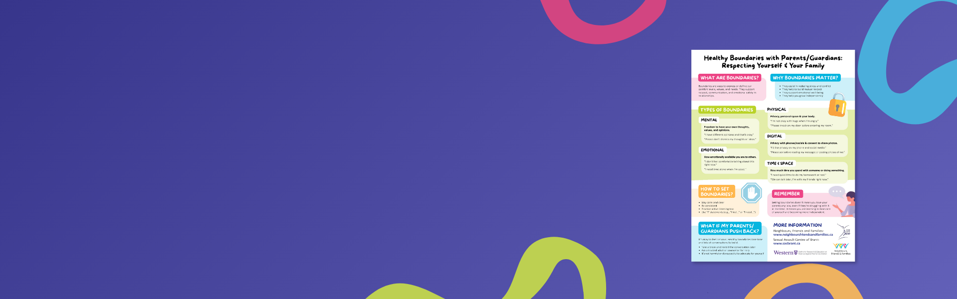 Neighbours, Friends and Families (NFF) is a trusted public education campaign and a leading source of intimate partner violence (IPV) prevention education in Ontario. NFF provides information on recognizing the warning signs of IPV, how to respond safely, and connect individuals—both those at risk and those using abusive behaviours—with appropriate supports. Grounded in research and informed by community expertise, our approach is designed to reach people where they live, work, and gather. By engaging the power of everyday relationships, NFF empowers neighbours, friends, family members, co-workers, and communities to take meaningful action to prevent violence, provide support and promote safety.